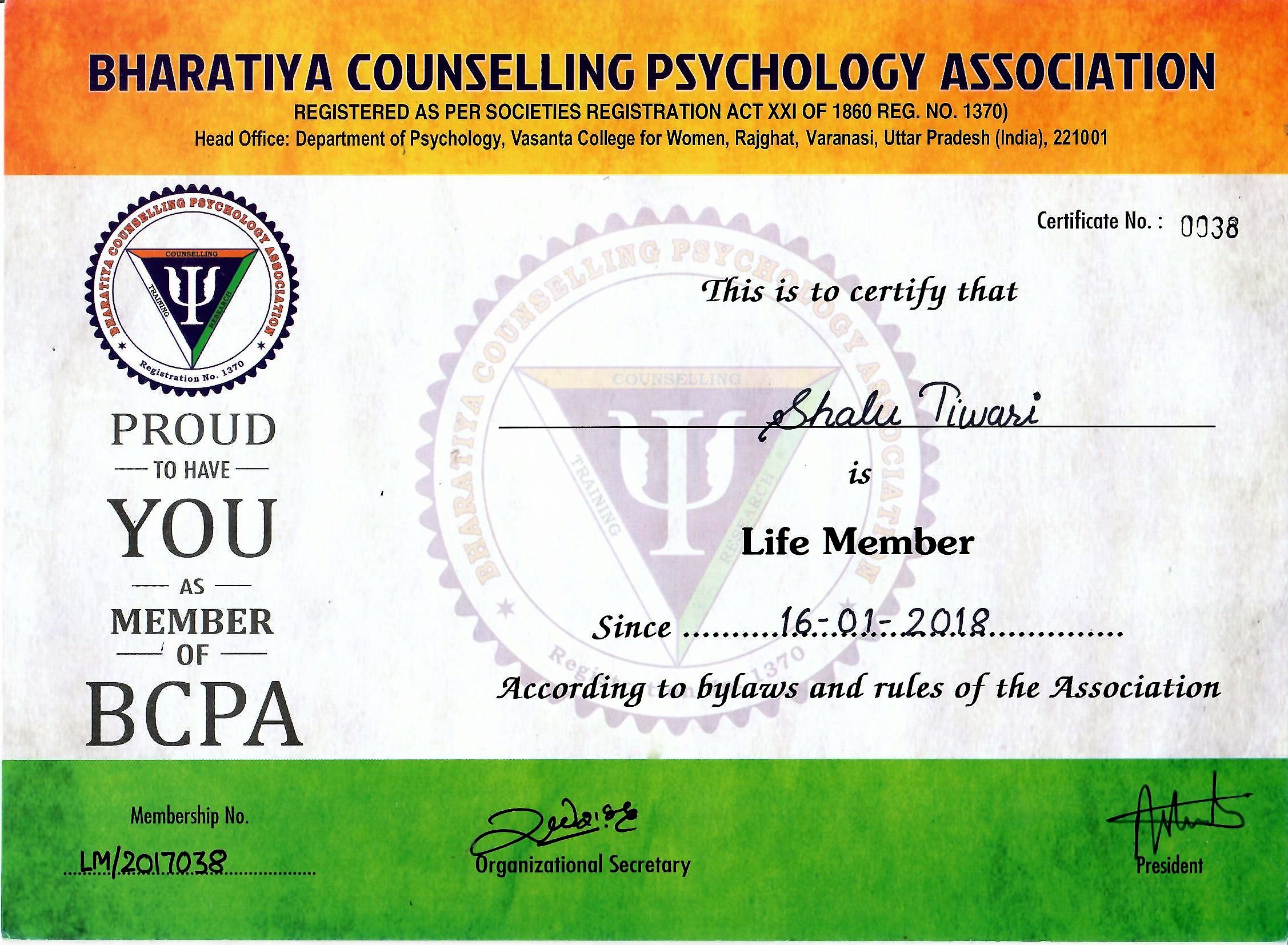MA/MPhil/PhD in Psychology with three years of practical training/regular experience